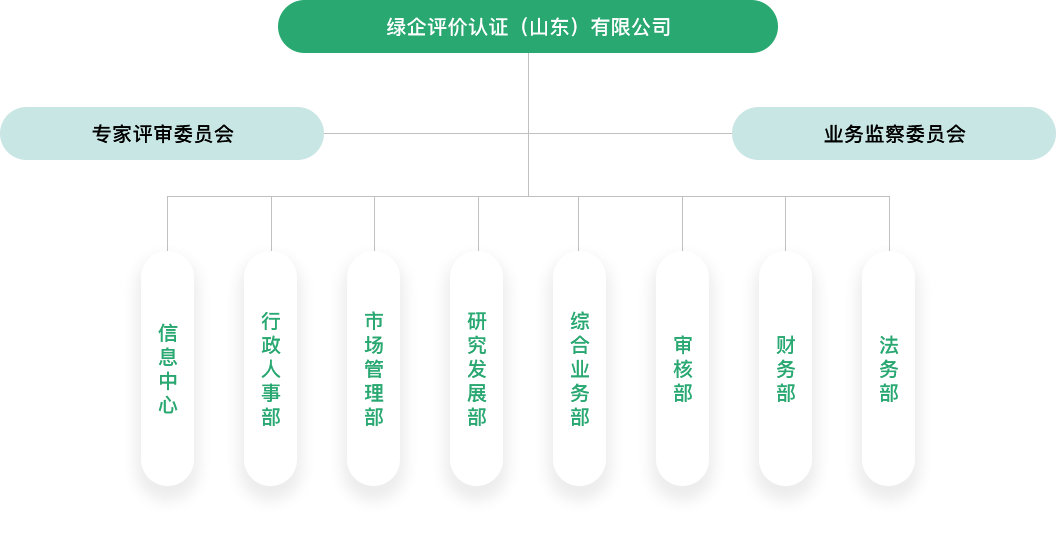 绿企评价认证(山东)有限公司为企业绿色化评价专业技术服务机构,位于山东省济南市,法人治理结构健全,下设信息中心、市场管理部、行政人事部、研究发展部、综合业务部、审核部、法务合规部、财务部8部门。公司建有一支30余人的高素质、专业化技术服务人员团队,设有专家评审委员会、业务监察委员会及专家智库,吸纳外部各行业专家委员20余人,高级顾问10人,专家智库成员包括企业管理、法律事务、金融资管、资产评估、财务会计、工程技术、机械制造、材料科学、信息技术和相关行业专家等。